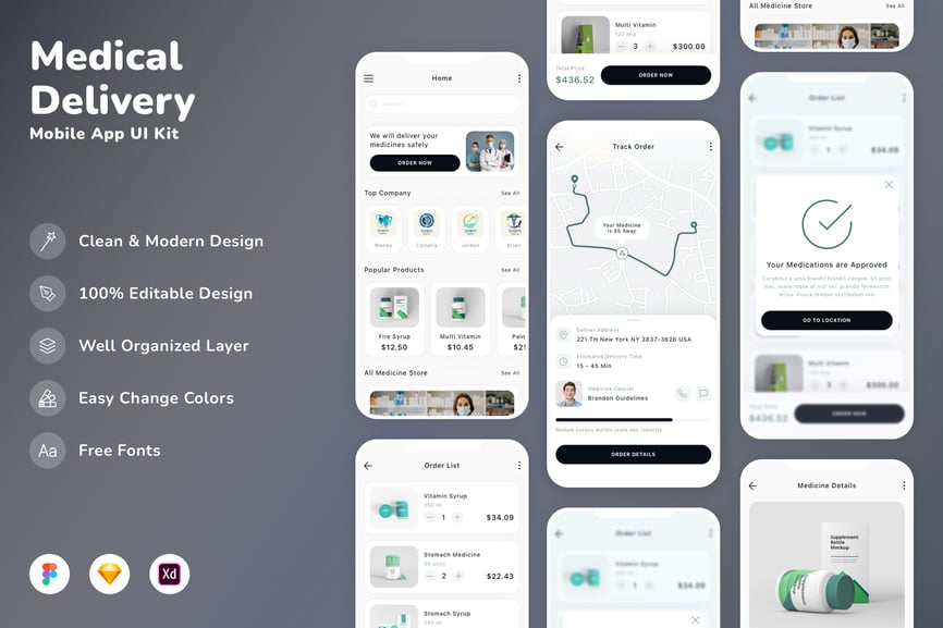 该 UI 套件采用现代设计趋势设计。