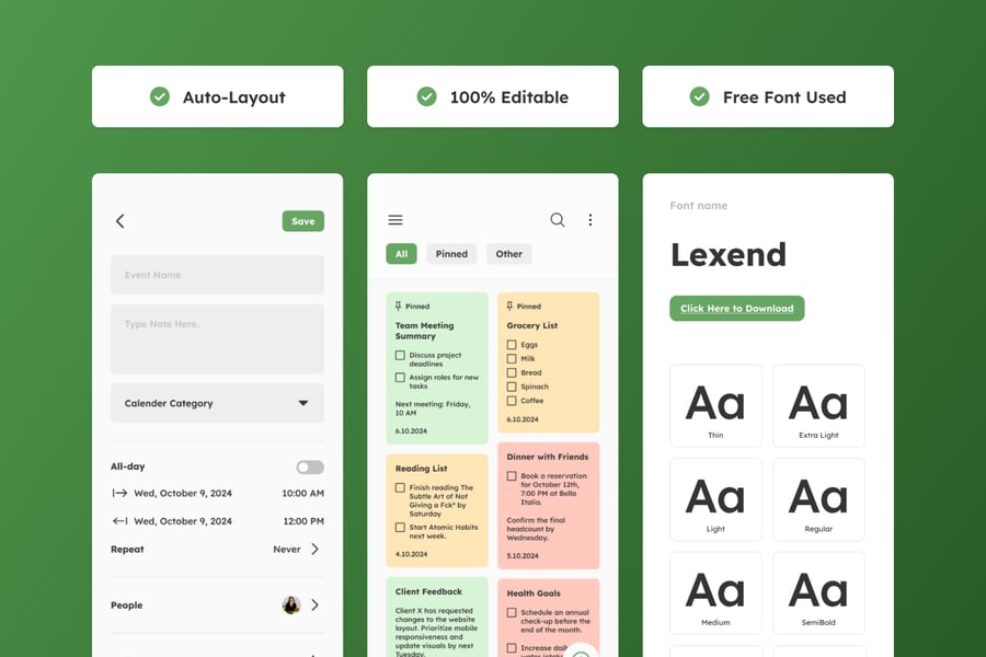这是一个 UI/UX 设计模板,不包含代码、后端功能或开发文件。