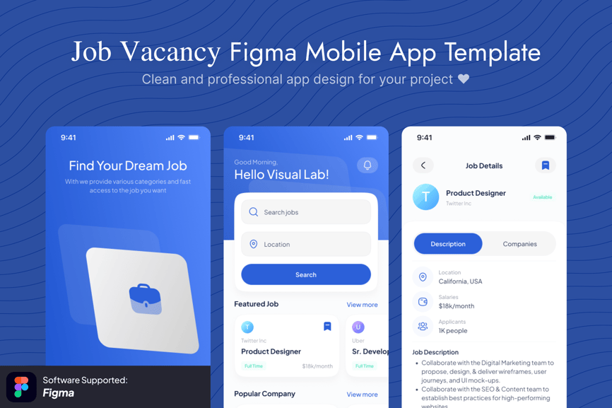Figma 职位空缺移动应用模板是一款现代化且用户友好的 UI 套件,旨在简化求职和招聘平台。该模板拥有简洁的布局、直观的导航和可自定义的组件,可帮助设计师和开发者快速高效地创建专业的移动应用程序。它非常适合求职网站、职业门户网站和招聘平台,确保招聘人员和求职者都能获得流畅的体验。