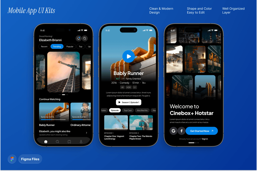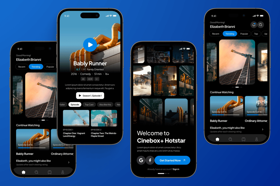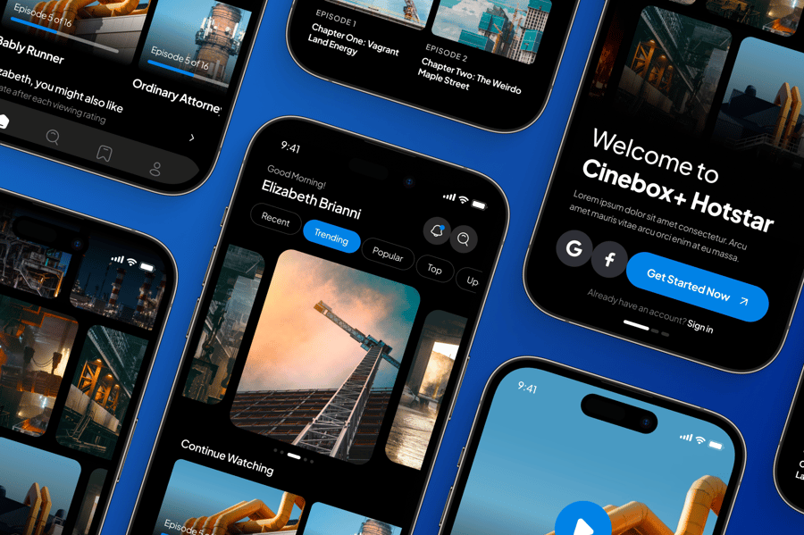 这款 UI 套件专为影视流媒体应用设计,旨在提供流畅的浏览、观看和发现数字内容的体验。它拥有丰富的布局,能够突出显示电影海报、剧集列表和个性化推荐,轻松适配影院、网络剧集或独立电影平台。其响应迅速且用户友好的结构,确保创作者能够快速构建出具有现代感且引人入胜的专业流媒体服务。