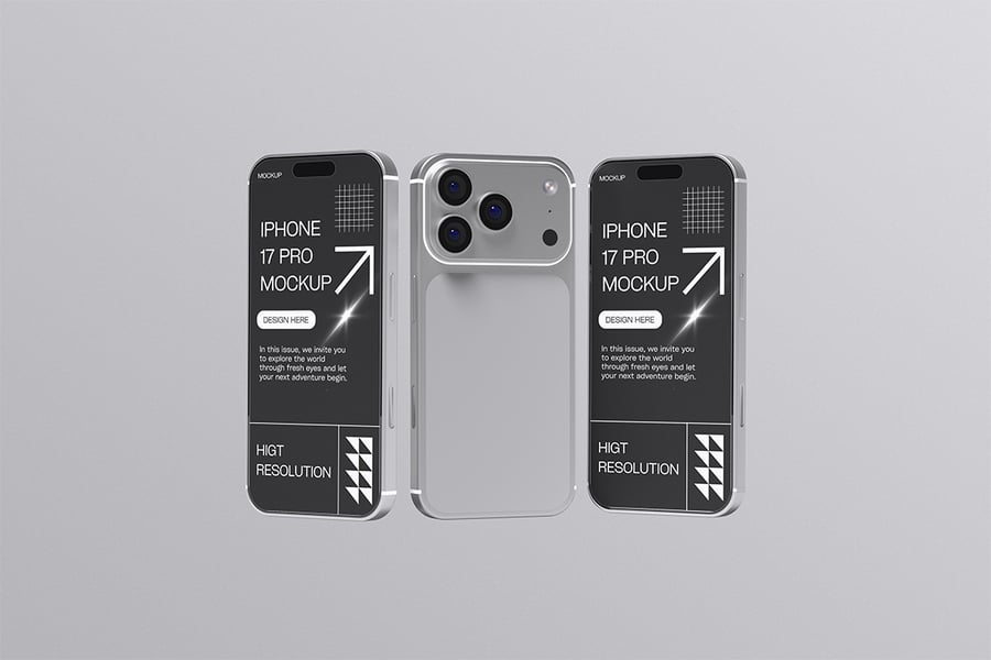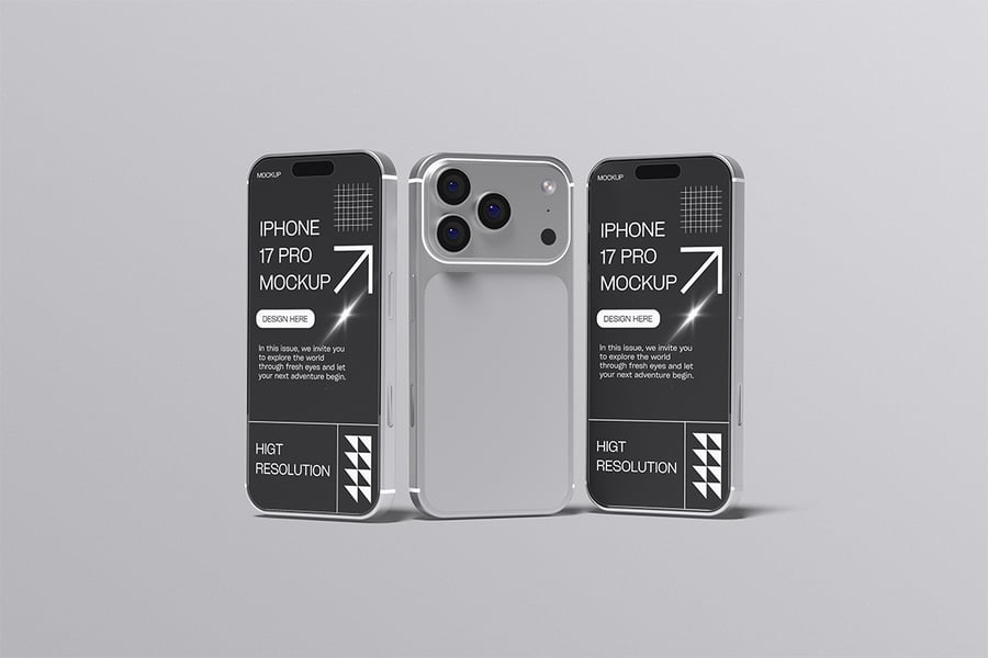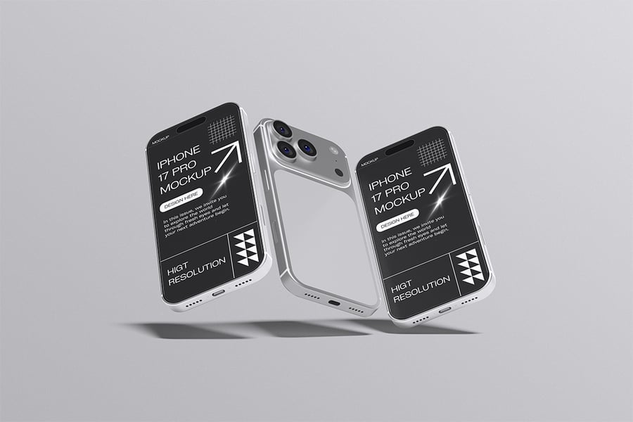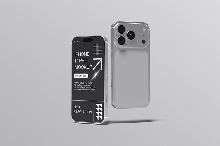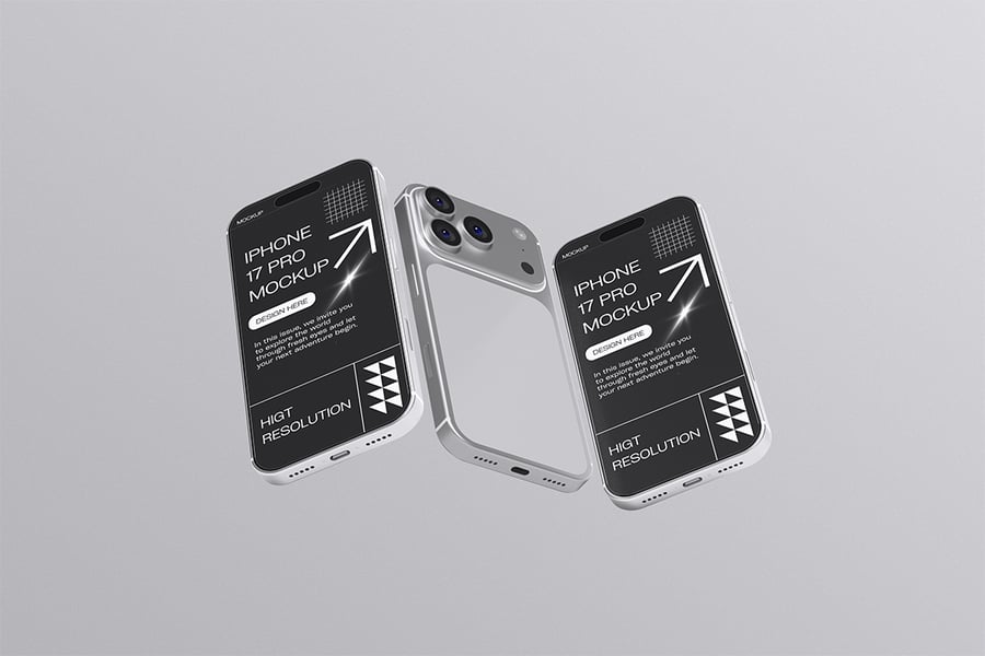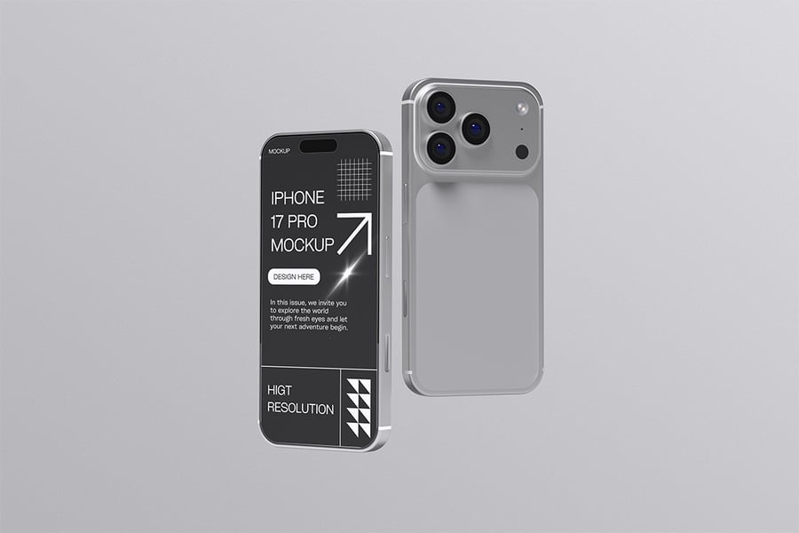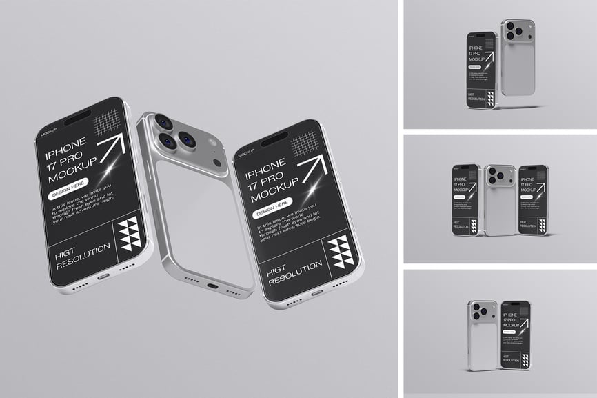 用这些精美的样机展示您的 iPhone 模型设计。此样机包含 4 个元素,并提供分层清晰的 PSD 文件。此外,此样机还采用了智能对象功能,这意味着您只需几秒钟即可轻松快捷地将当前设计替换为您自己的设计。