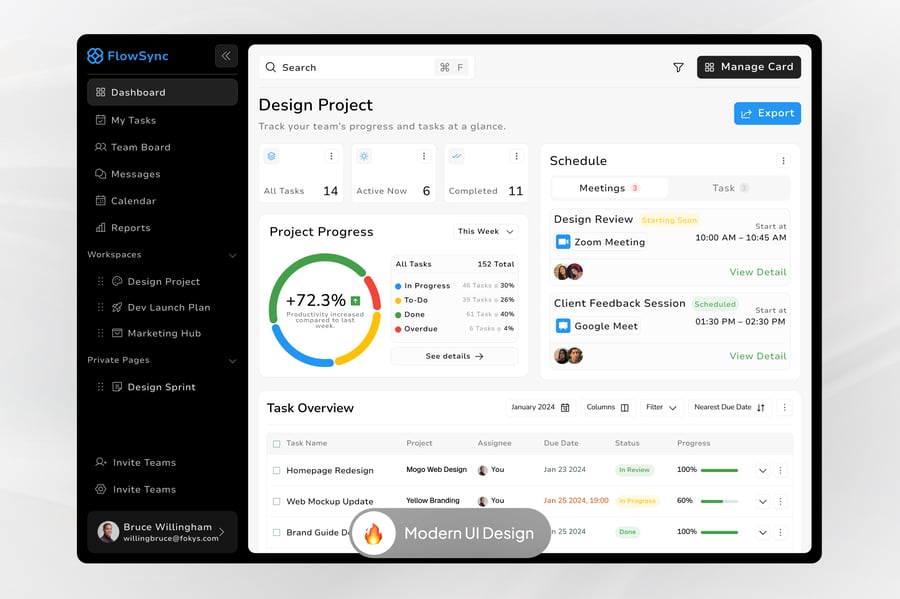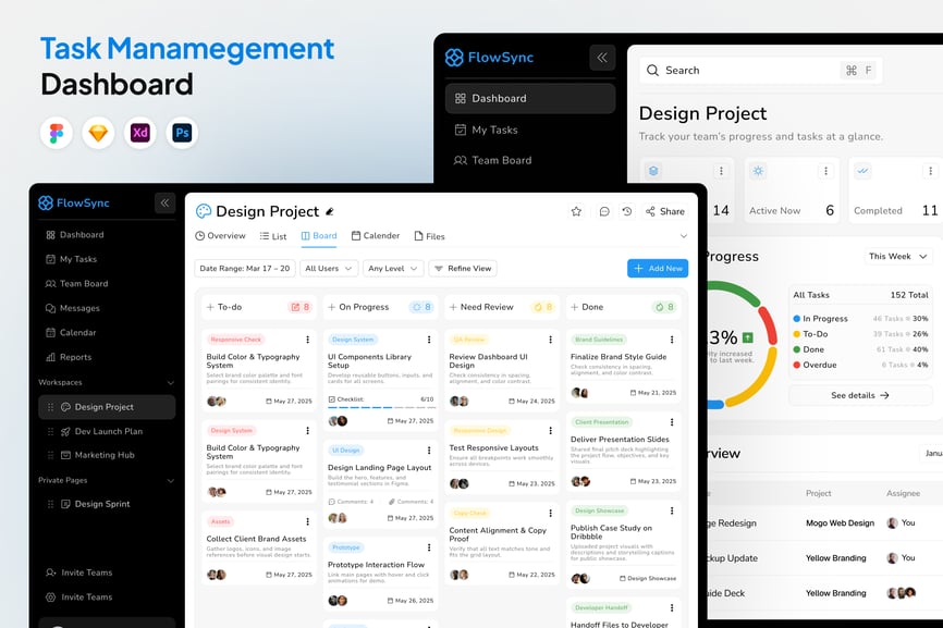 任务管理仪表盘旨在简化您的工作流程,助您在更短的时间内取得更多成果。轻松分配任务、监控截止日期,并通过详细的分析数据直观地呈现工作效率。无论您是管理个人项目还是领导团队,此仪表盘都能让您保持专注、高效,并始终领先一步。