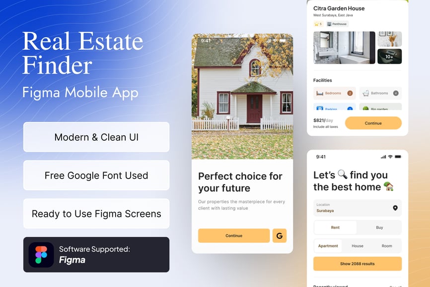 * **现代房地产 UI 套件**,专为 Figma 移动应用设计