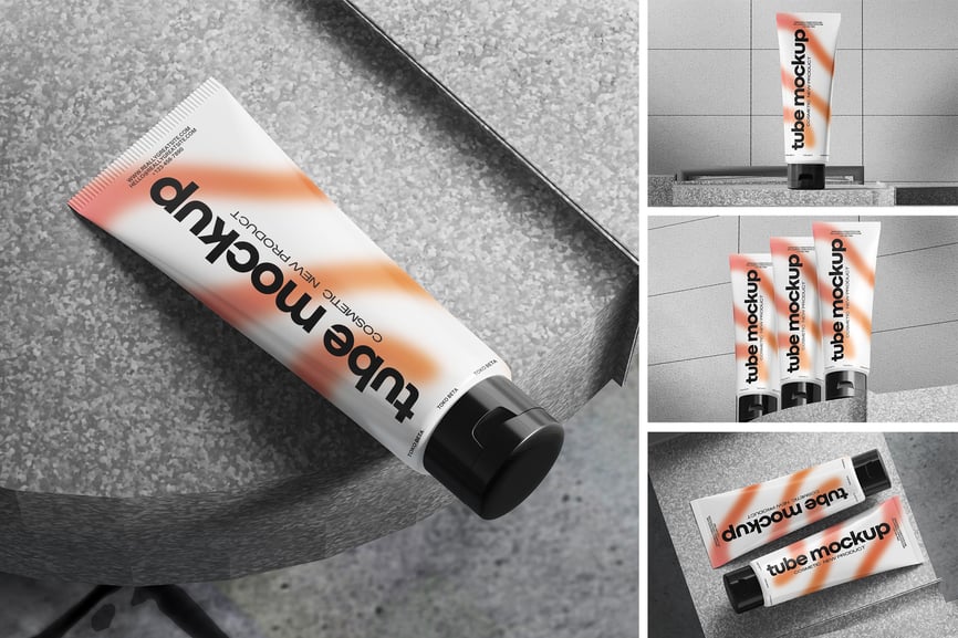 本产品包含4个不同的化妆品软管包装样机,以逼真的外观展示您的设计。这些样机文件使用智能对象功能,可帮助您在几秒钟内更改设计(内含PDF说明)。