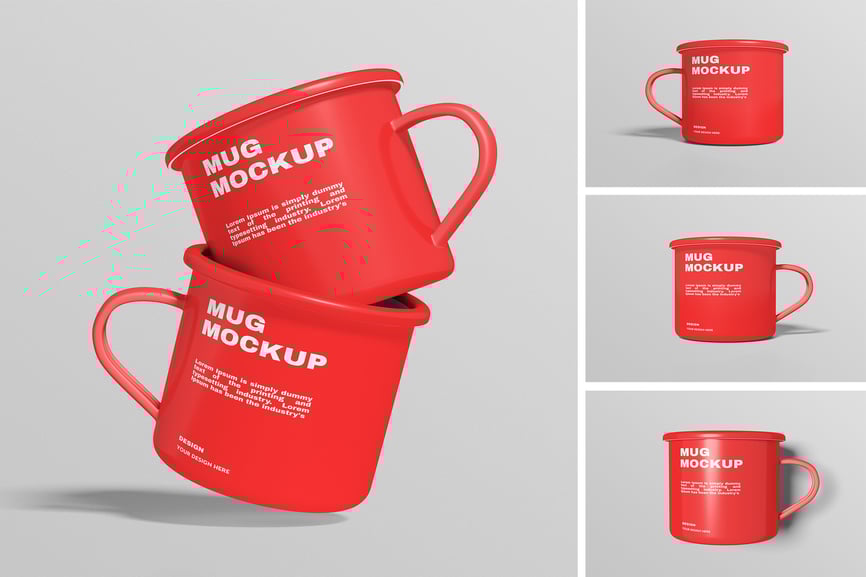 用这些精美的样机展示您的搪瓷杯样机设计。此样机包含 3 个项目,并提供分层清晰的 PSD 文件。此外,此样机还采用了智能对象功能,这意味着您只需几秒钟即可轻松快捷地将当前设计替换为您自己的设计。