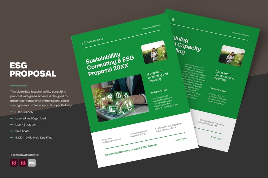 这份简洁的 ESG 和可持续发展咨询方案以绿色为点缀,旨在以专业且富有影响力的方式呈现企业的环境和社会战略。方案布局均衡,字体清晰,视觉效果现代,强调清晰度和可读性,使复杂的信息易于理解。绿色点缀突出了关键部分,并强化了生态意识和可持续发展的主题,而留白则确保了设计清新简洁。该方案非常适合咨询公司、环保机构和企业责任倡议组织,展现了企业对可持续发展实践的信任、专业知识和坚定承诺。