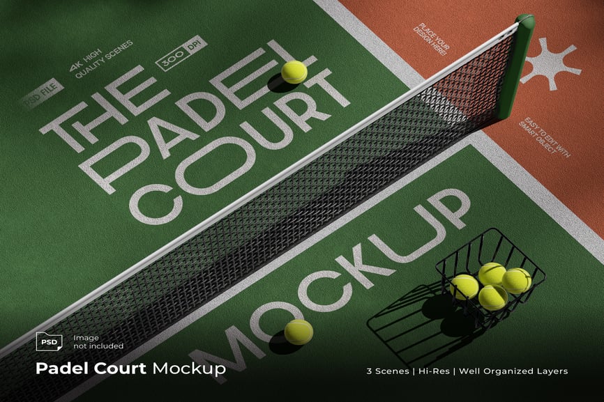 在这款专为快速客户演示和精美作品集打造的高级**板式网球场模型**上展示您的线条、标志和赞助商图案。每个场景都经过精心拍摄,阴影清晰,草坪纹理逼真,并采用图层叠加设计,方便您在 Photoshop 中进行全面控制。您可以将作品拖放到智能对象中,调整球场颜色,切换网球、篮筐、球拍和球网的显示/隐藏,并微调高光、阴影和景深,以完美契合您的品牌风格。