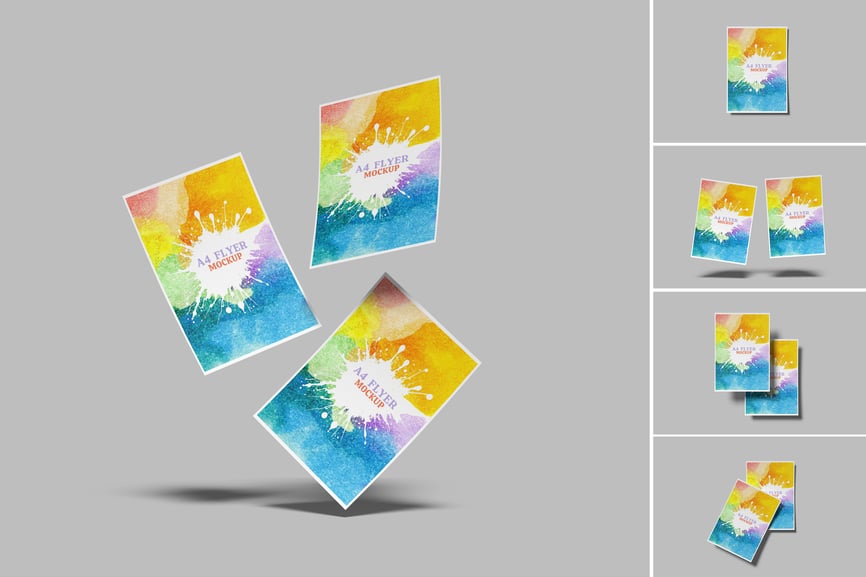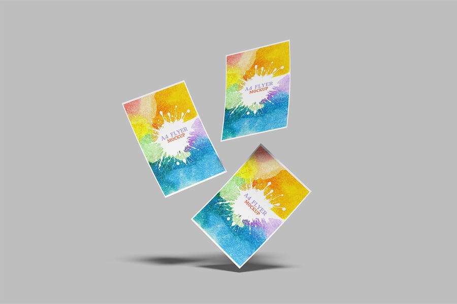 用逼真的传单模型展示您的创意!只需几秒钟,即可为您的客户创建逼真的传单模型展示。这些 PSD 文件使用智能对象功能,因此您可以轻松快捷地替换模型内容。
