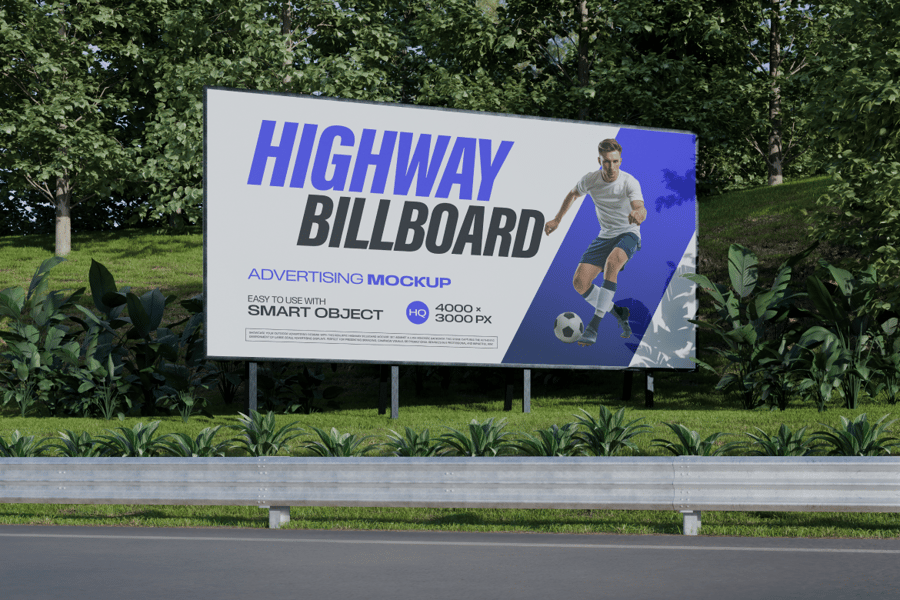 使用这款**高速公路广告牌模型**,让您的户外广告创意栩栩如生。该模型采用逼真的路边环境设计,真实还原了您的广告在现实世界中的效果——阳光、绿植,应有尽有。明亮的日光环境赋予您的设计自然活力,使其成为客户演示、品牌作品集或宣传展示的理想之选。