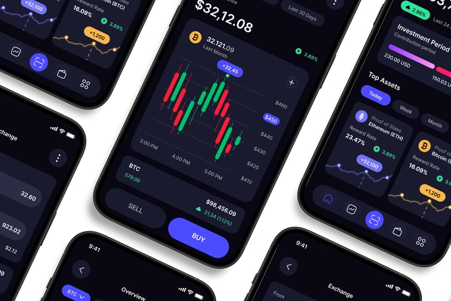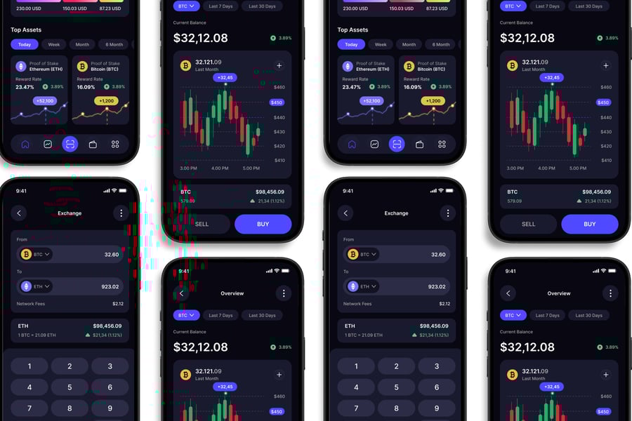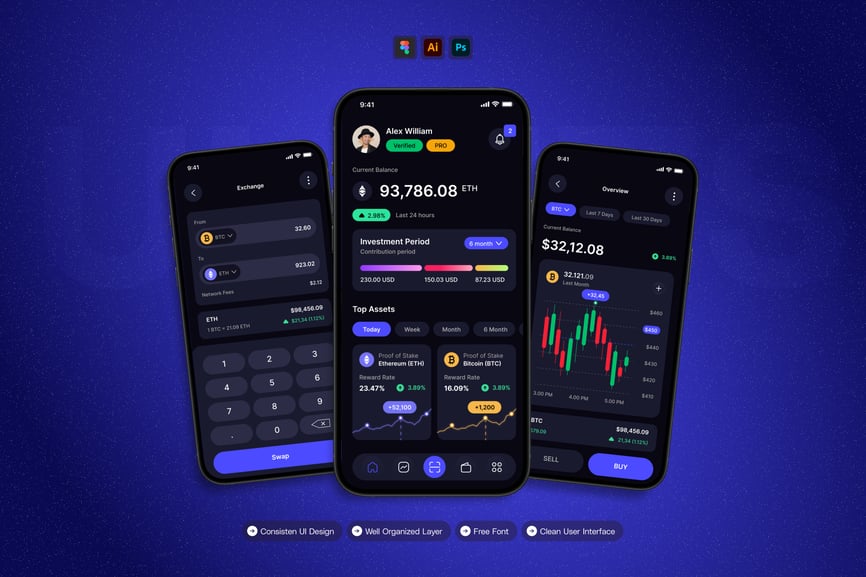 隆重推出 **Crypto** 移动应用 UI 套件,这是一款现代化且功能全面的解决方案,可助您创建简洁易用的应用界面。对于希望加快设计流程的设计师和开发者而言,这款 UI 套件堪称完美之选,它将您所需的所有基本组件整合在一个井然有序的软件包中。