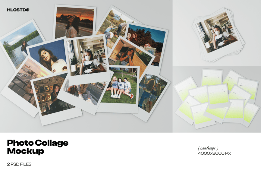 使用这款**照片拼贴模型**打造引人入胜的展示效果。它采用逼真的纸张纹理和自然的阴影设计,非常适合以美观现代的框架展示摄影作品、活动回忆或创意作品集。
