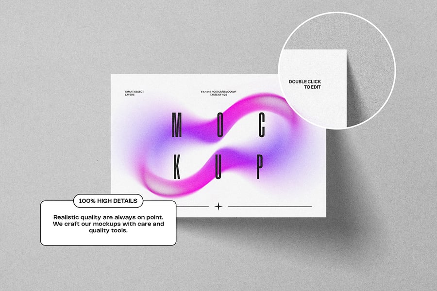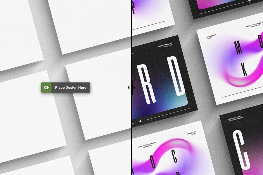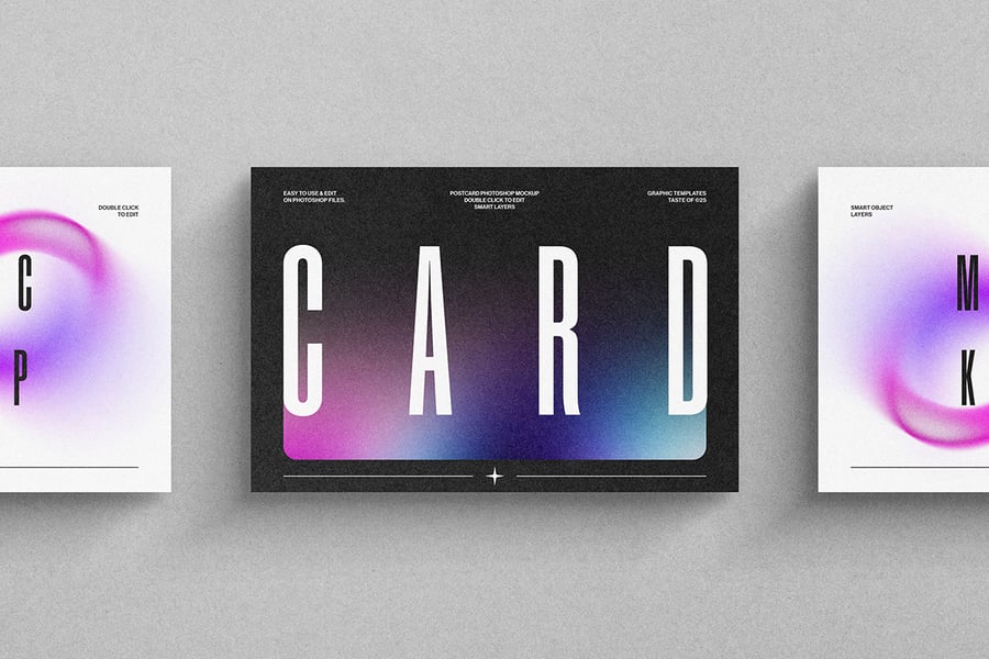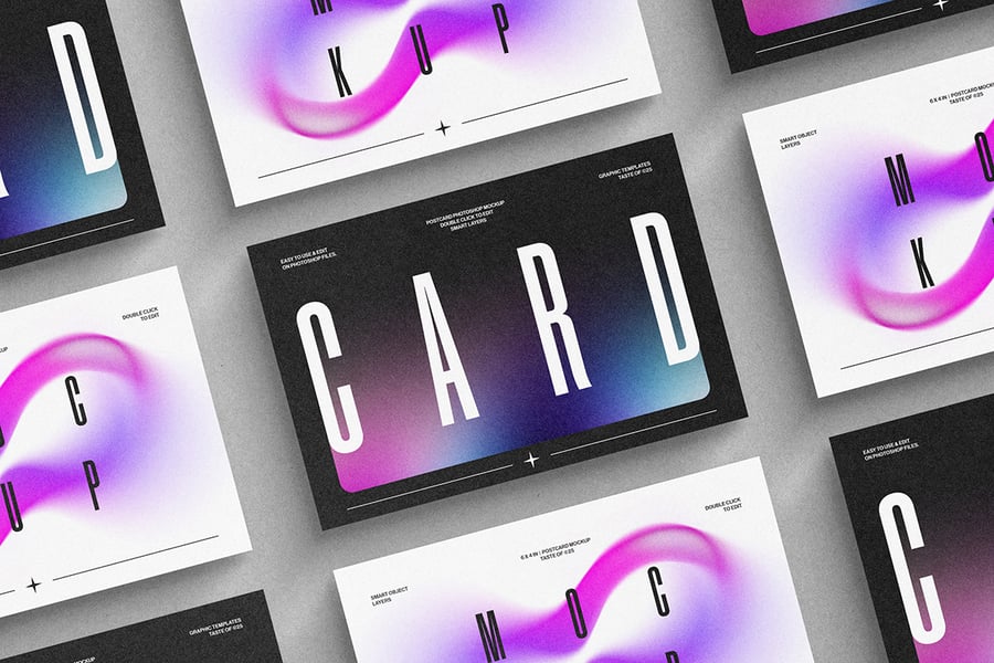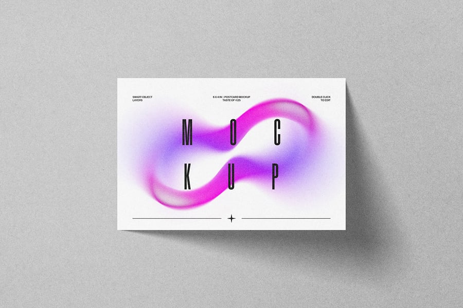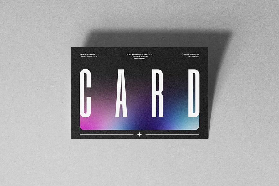 一款简洁逼真的明信片样机,背景颜色可自定义,并带有智能对象图层。非常适合以专业优雅的方式展示邀请函、贺卡或文具设计。