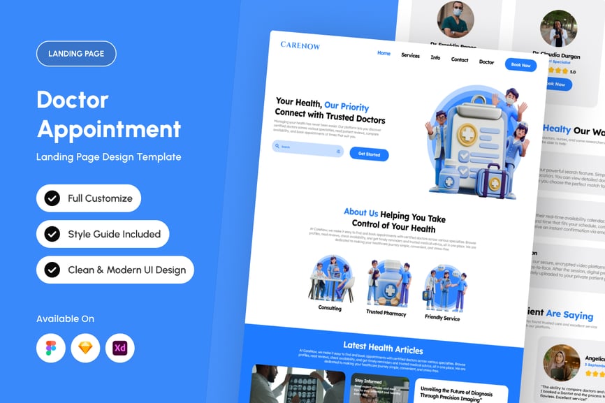 CareNow 为医疗专业人士打造以人为本的现代化用户界面,提供流畅的患者就医体验。它非常适合数字化诊所和设计项目,通过简洁的视觉系统兼顾同理心和精准性,从而提升用户的信心和舒适度。