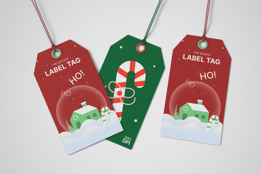 这款圣诞标签样机是一款充满节日气氛的高品质 Photoshop 模板,旨在以温馨喜庆的圣诞主题展示您的节日礼品标签、包装或品牌设计。此套装包含 3 个 PSD 文件(4000×3000 像素,300 DPI),图层组织清晰,并具备智能对象功能,方便您快速插入设计。