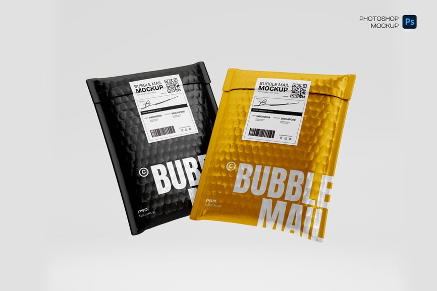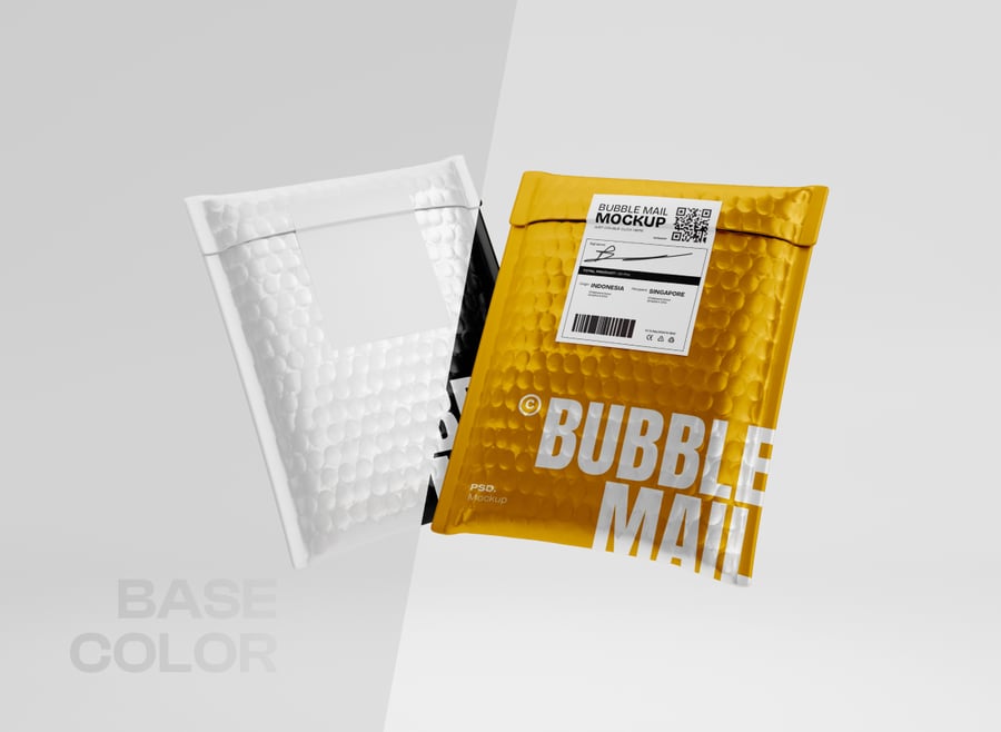 使用这款**气泡信封样机**展示您的设计产品。文件包含颜色对象和背景的独立图层。标签的智能图层方便您轻松应用设计,使用简单。