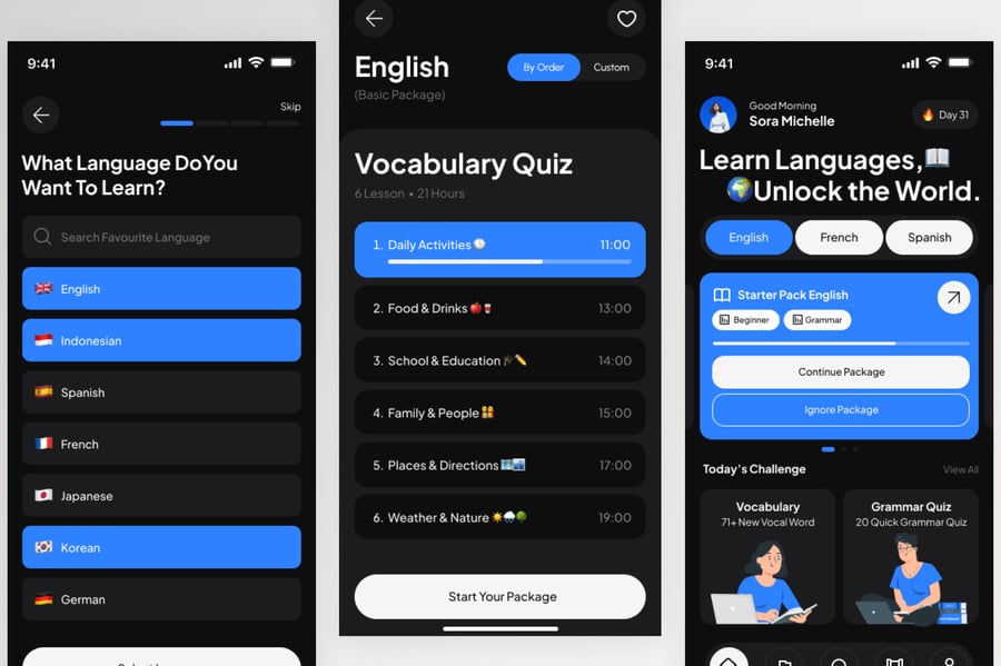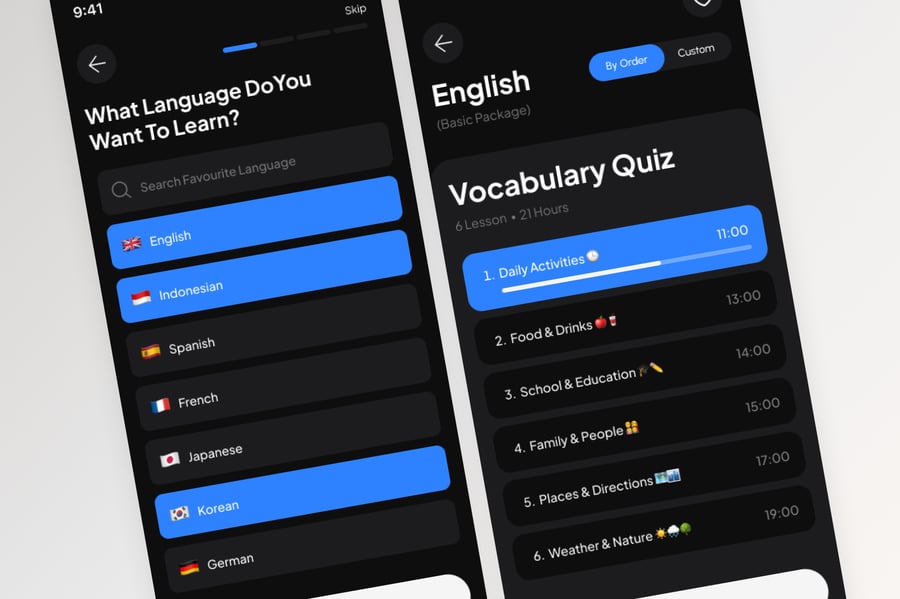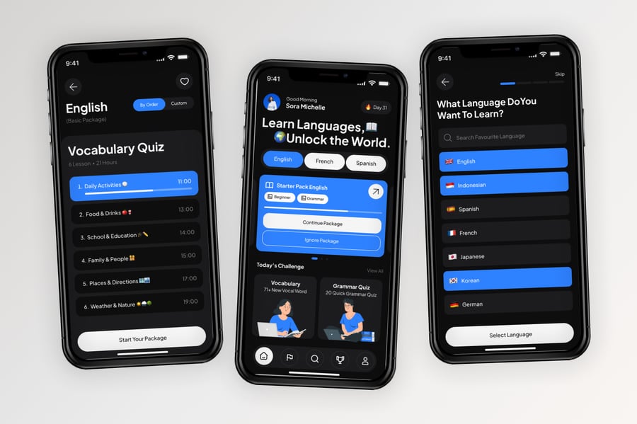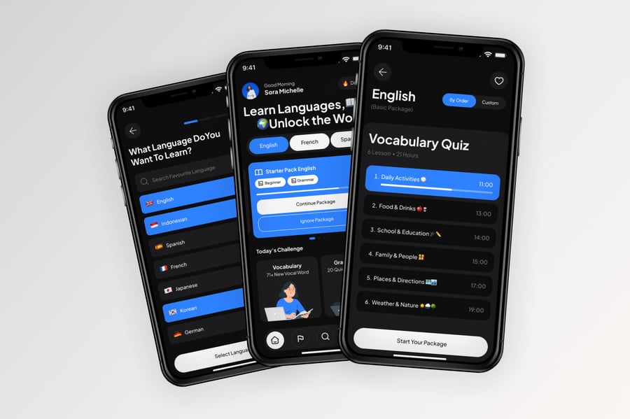使用这款专业设计的模板,轻松打造极具影响力的语言学习移动应用。