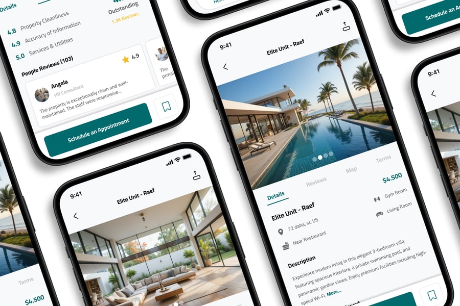 这款房地产 UI 工具包的设计重点在于易用性和一致性,让您轻松创建美观实用的移动应用程序。每个元素都经过精心构建,完全可定制,并可根据您的品牌进行调整。无论您是设计社交应用、电商应用还是效率工具,这款工具包都能让您灵活地将创意变为现实。