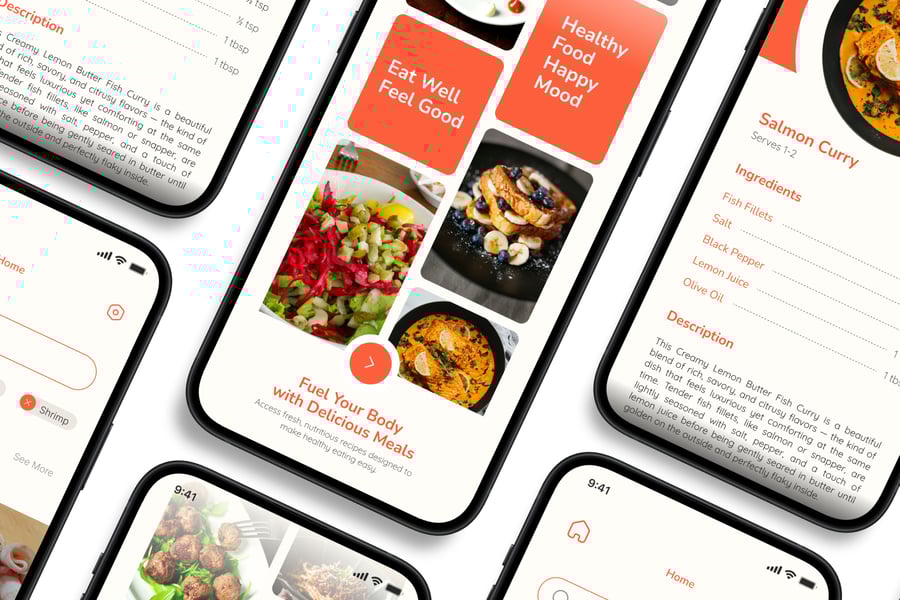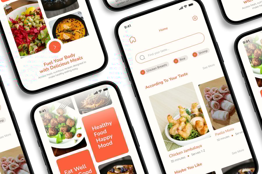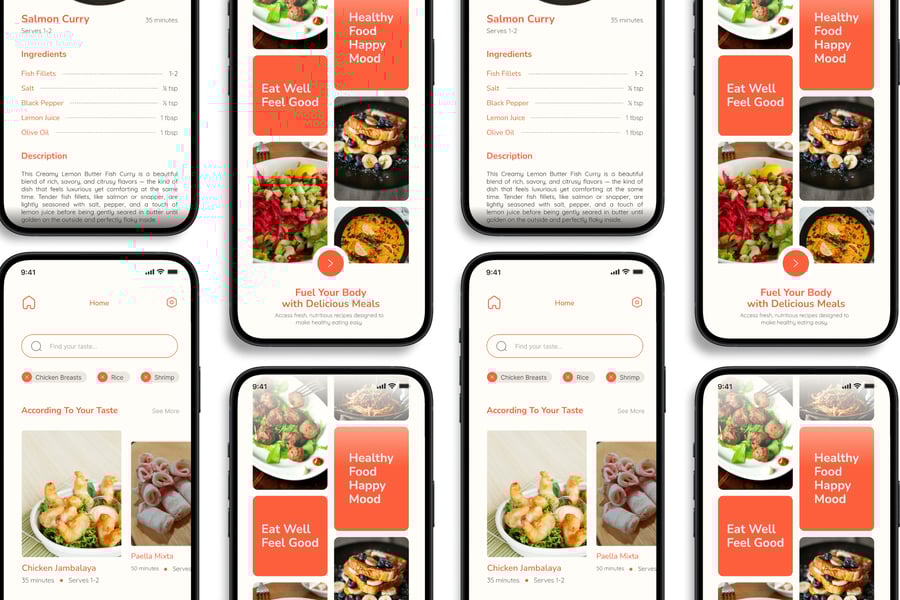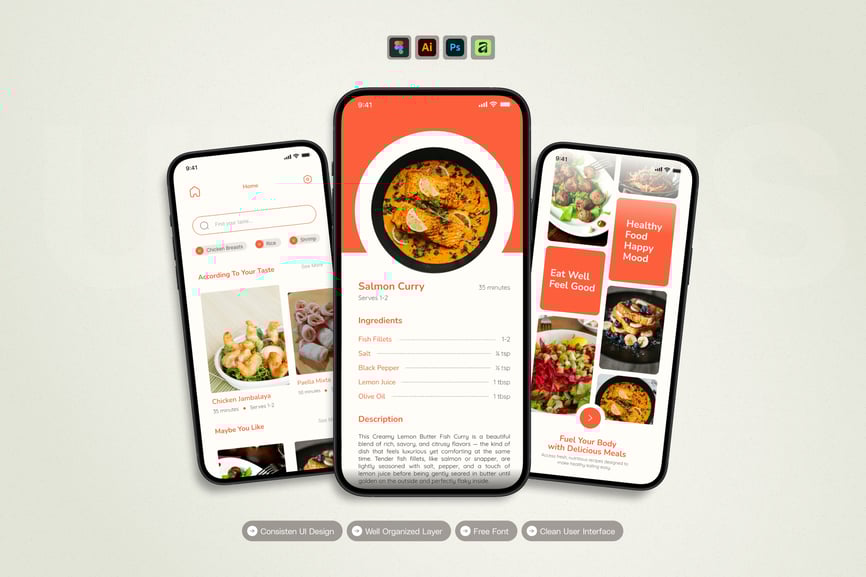 隆重推出 **Recipe In Food** 移动应用 UI 套件,这是一款现代化且功能全面的解决方案,可助您创建简洁易用的应用界面。对于希望加快设计流程的设计师和开发者而言,这款 UI 套件堪称完美之选,它将您所需的所有基本组件整合在一个井然有序的软件包中。