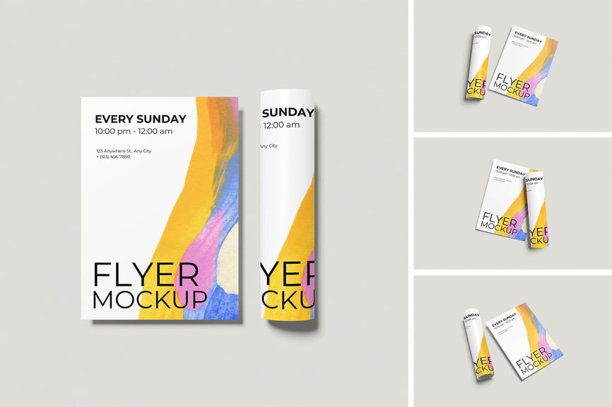 用这些精美的样机展示您的高品质传单样机设计。此样机包含 4 个元素,并提供分层清晰的 PSD 文件。此外,此样机还采用了智能对象功能,这意味着您只需几秒钟即可轻松快捷地将当前设计替换为您自己的设计。