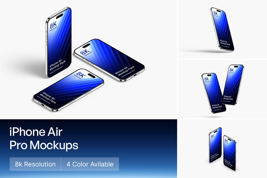 获取最新的 iPhone Air 模型,以简洁时尚的方式展示您的应用或设计。非常适合设计师在作品集、客户展示或网站上展示作品。