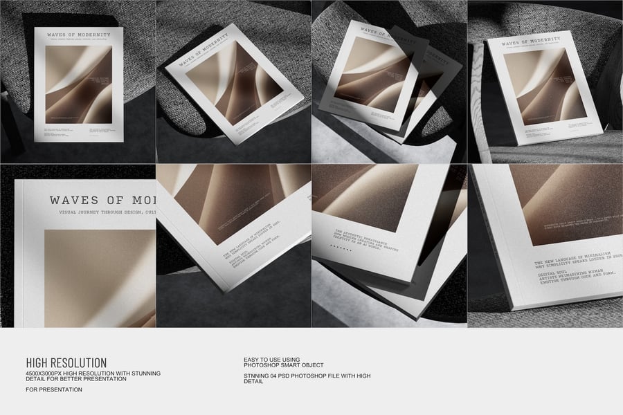 使用这款高质量的杂志模型,提升您的视觉演示效果,增强您品牌的专业性——非常适合展示编辑布局、品牌概念和印刷设计项目。