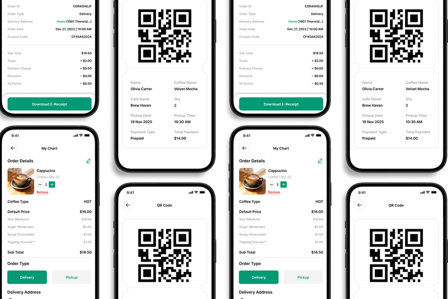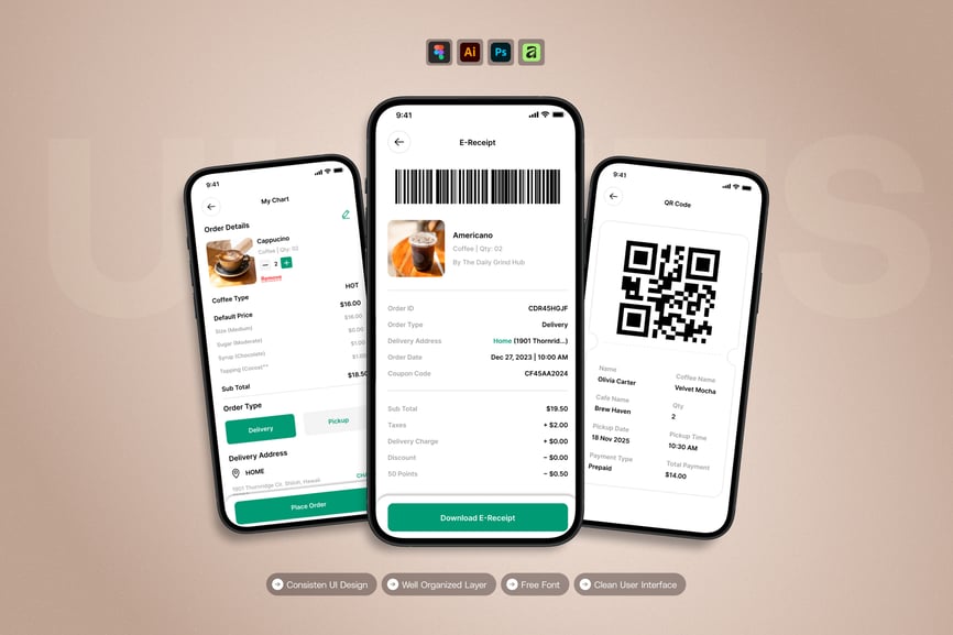 **咖啡店账单** UI 套件的设计重点在于易用性和一致性,让您轻松创建美观实用的移动应用。每个元素都经过精心构建,完全可定制,并可根据您的品牌进行调整。无论您是设计社交应用、电商应用还是效率工具,此套件都能让您灵活地将创意变为现实。