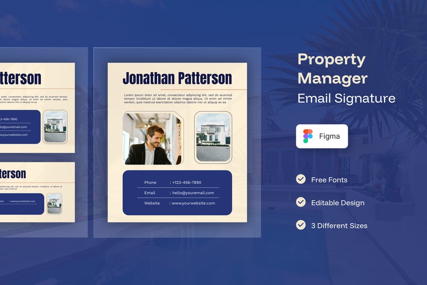 简洁专业的电子邮件签名设计,适用于商务或个人用途。一款设计提供三种不同尺寸,满足您的多种需求。现代、优雅、简洁的设计风格,令您的电子邮件签名更显专业。