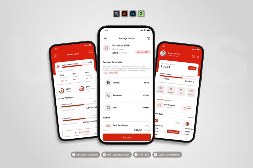**互联网服务提供商** UI 套件的设计重点在于易用性和一致性,让您轻松创建美观实用的移动应用程序。每个元素都经过精心构建,完全可定制,并可随时适配您的品牌。无论您是设计社交应用、电商应用还是效率工具,此套件都能让您灵活地将创意变为现实。