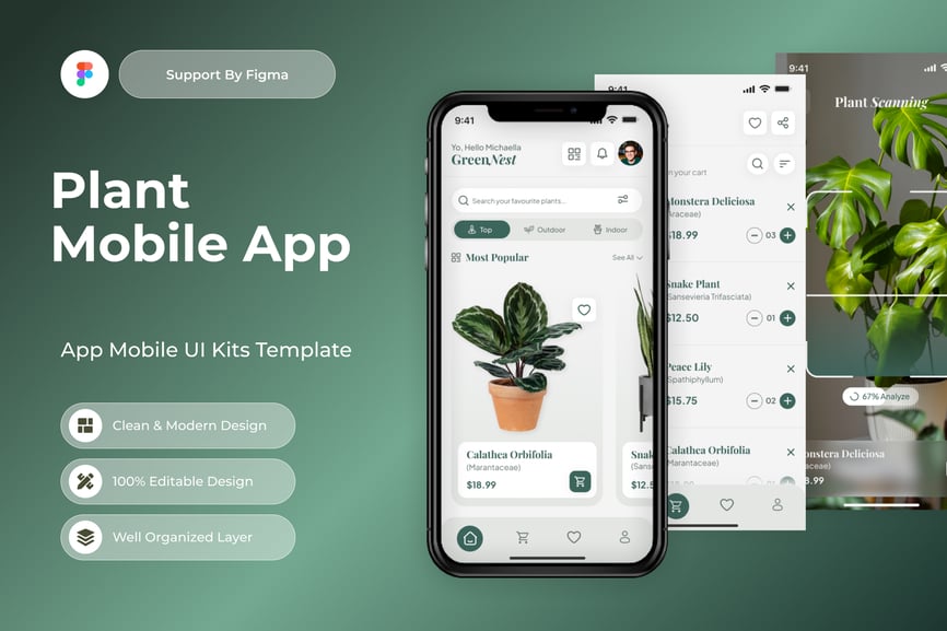 使用这款专业设计的模板,轻松打造极具影响力的植物主题移动应用。