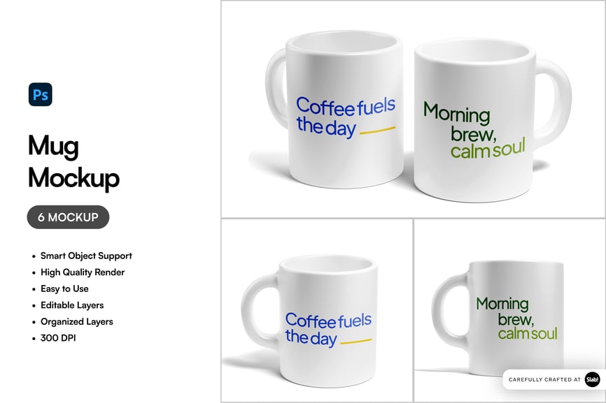 如果您需要高清咖啡杯样机,那就来对地方了。此套装包含 6 款高品质渲染的 .jpg 格式马克杯样机,定能提升您的项目效果。