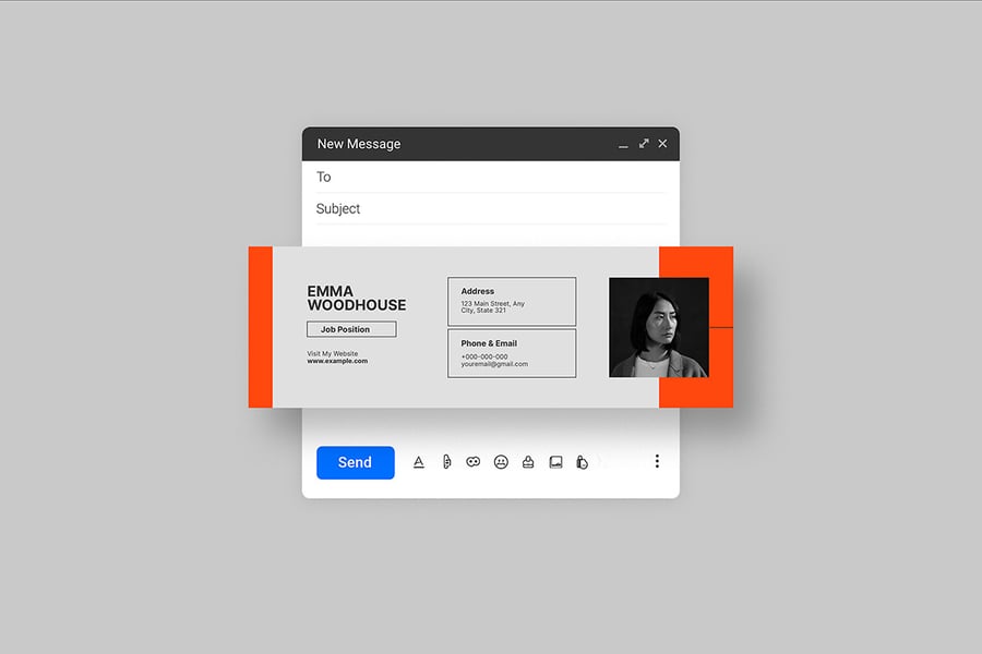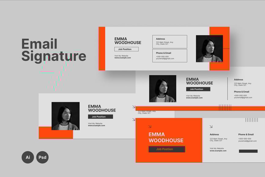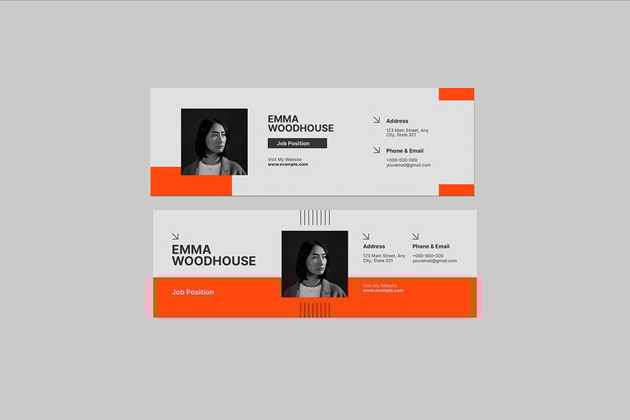 这款可编辑的邮件签名模板适用于任何类型的企业——从时尚零售到电商和公司用途。您可以轻松添加自己的照片、徽标、颜色和联系信息进行自定义。