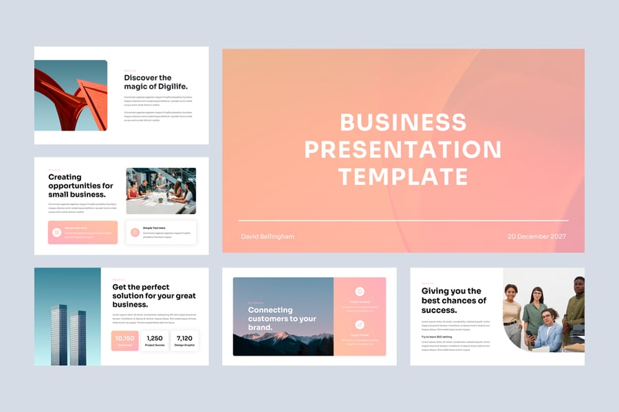 此演示模板可用于各种目的,例如:公司简介、企业、代理、金融、广告、数字营销、商业计划、提案、演示文稿、技术、工作室、项目、多用途、初创企业、行业,也可用于个人作品集。