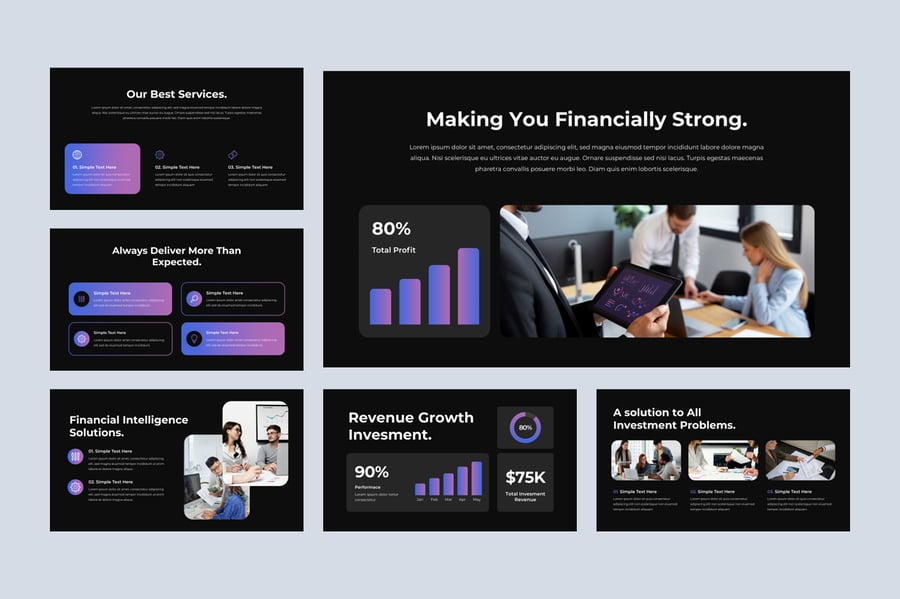 此演示模板可用于各种目的,例如:金融、财产、银行、公司简介、企业、代理、广告、数字营销、商业计划、提案、演示文稿、技术、工作室、项目、多用途、初创企业、行业,也可用于个人投资组合。