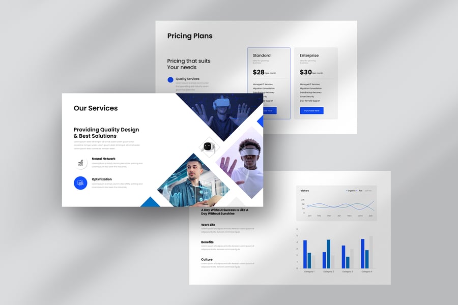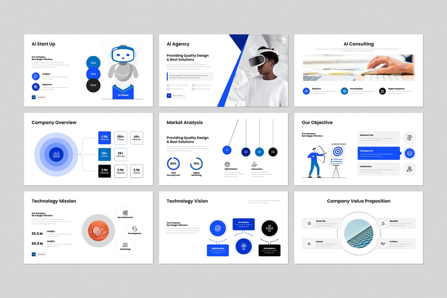 科技演示风格模板,满足您独特、专业、简洁、创意十足的演示需求。所有幻灯片均采用精美的风格设计。所有元素均可轻松编辑,您可以轻松更改颜色,以匹配您的个人或公司品牌。