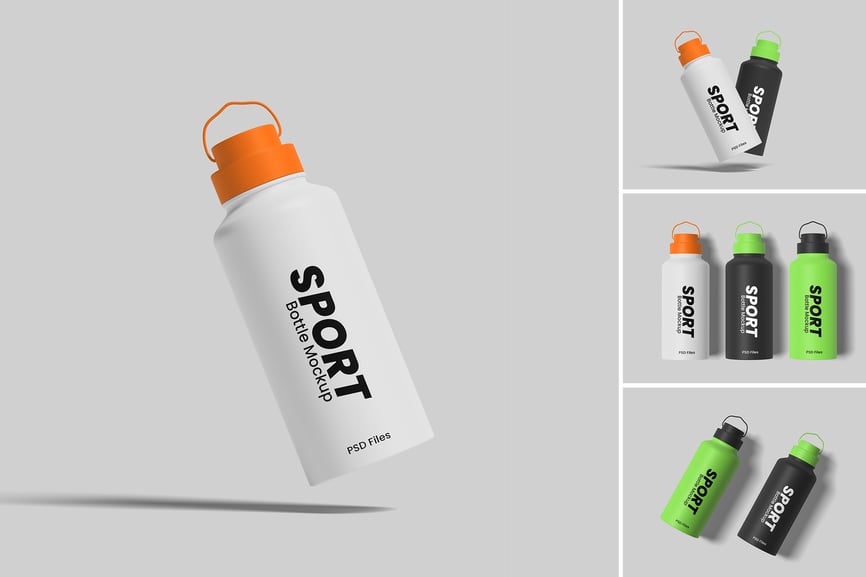 使用这款 PSD 样机,以逼真的效果展示您的高品质运动水壶设计。这些样机文件采用智能对象功能,可帮助您在几秒钟内更改设计(附带 PDF 说明)。