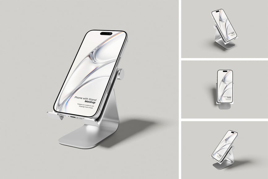 用这些精美的样机展示您的手机支架样机设计。此样机包含 4 个元素,并提供分层清晰的 PSD 文件。此外,该样机还采用了智能对象功能,这意味着您只需几秒钟即可轻松快捷地将当前设计替换为您自己的设计。