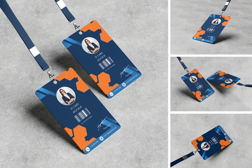 用这些精美的素材模型展示您的高品质身份证模型套装设计。此模型包含 4 个项目,并提供分层清晰的 PSD 文件。此外,该模型还采用了智能对象功能,这意味着您只需几秒钟即可轻松快捷地将当前设计替换为您自己的设计。