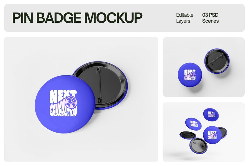我们使用 Photoshop 的智能对象功能,使这些模型文件易于编辑。这款多功能且引人注目的模型可提升您的品牌形象,非常适合展示徽章、胸针、标志等。这些文件高度可定制,您可以创建各种不同的外观。只需按照用户指南(PDF)操作即可。