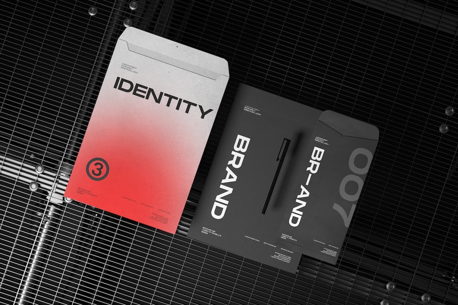 一套包含信封和文档布局的样机,非常适合用于展示品牌标识设计、品牌系统和企业宣传材料。该布局清晰地展示了打印区域和结构,便于专业演示