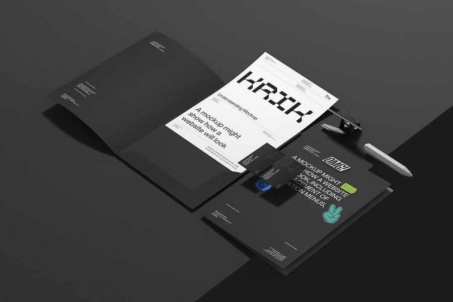 这款文具样机布局展示了文件、文件夹和卡片,通过逼真的光照和简洁的结构,帮助呈现品牌识别概念。它提供了一个井然有序的设置,以统一的方式展示设计元素