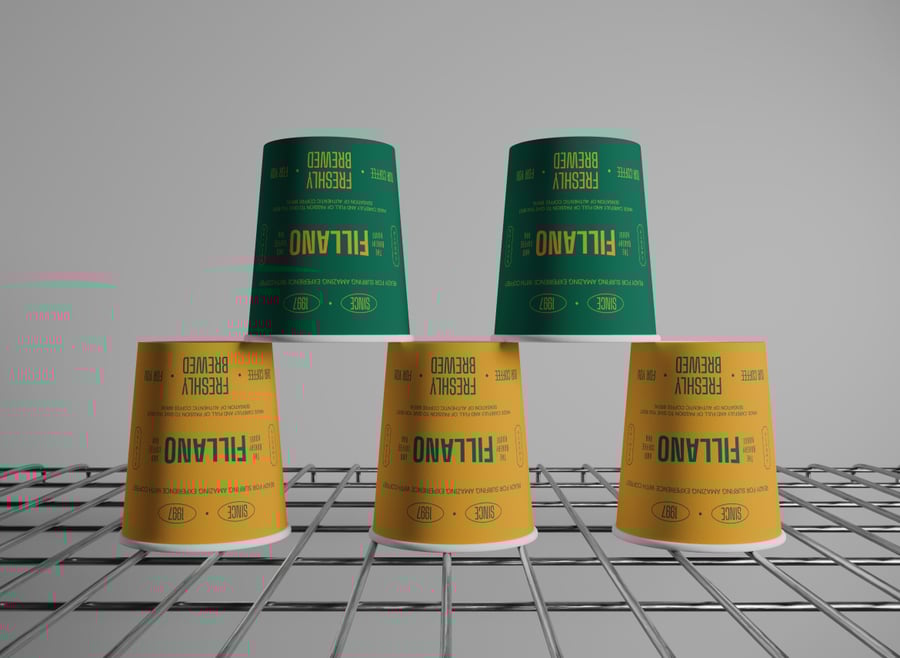 将您的杯套或徽标设计拖放到智能对象图层中,即可立即看到它们包裹住所有三个杯子。只需几秒钟即可调整杯子间距、层架深度或灯光温度,营造早晨的忙碌氛围或午后宁静的惬意环境。轻松更改牛皮纸颜色和杯盖样式,以匹配您的饮品品牌。