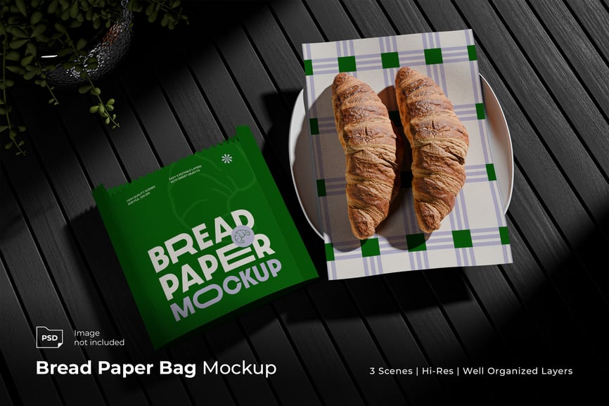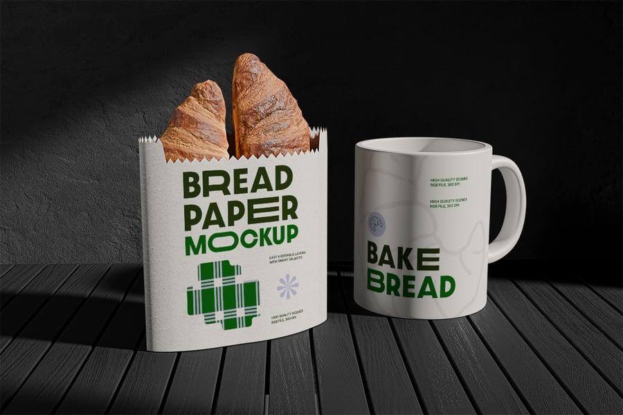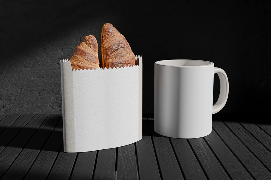 这款温馨的**面包纸样**套装,让您的烘焙品牌形象栩栩如生。套装包含酥脆的羊角面包、纸袋和与之相配的咖啡杯,摆放在深色木桌上,营造出温暖的咖啡馆氛围。场景采用高分辨率拍摄,阴影和高光逼真,非常适合展示烘焙店、咖啡店或手工面包品牌的标志、图案和标签设计。只需将您的设计稿拖放到智能对象中,根据需要调整背景色调,即可在几分钟内获得令人垂涎欲滴的视觉效果,用于演示文稿、社交媒体或在线商店。