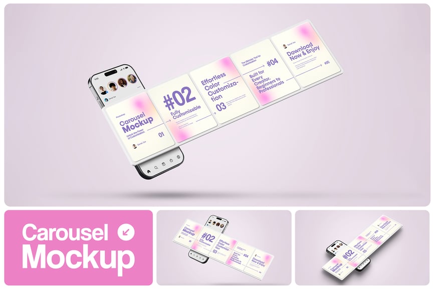 **隆重推出我们的 Instagram 轮播品牌宣传模型套装,旨在以现代风格和逼真细节展示您的多轮社交媒体设计。这套模型套装非常适合设计师、网红、营销人员和品牌策略师,可帮助您在简洁专业的 Instagram 界面中展示轮播帖子、故事布局、促销活动和品牌内容。**