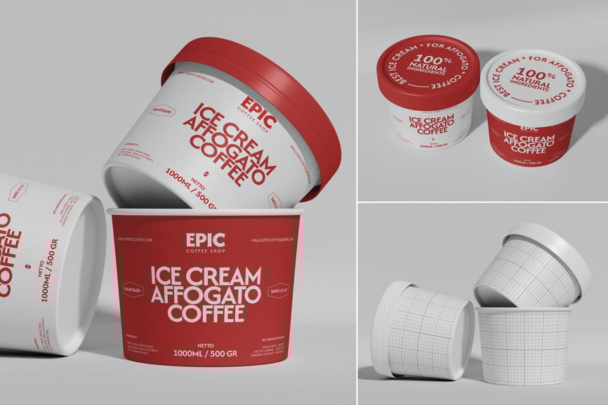 使用这款易于编辑的冰淇淋桶模型来提升销量——多角度、柔光,旨在带来令人愉悦的清晰视觉效果。