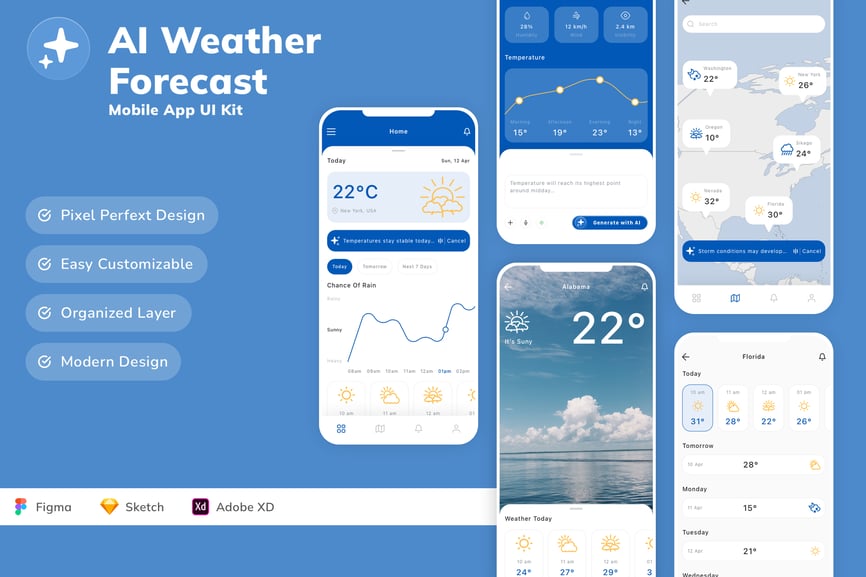 每个屏幕都可完全自定义,易于使用,并针对 Figma、Sketch 和 Adobe XD 进行了精心设计。