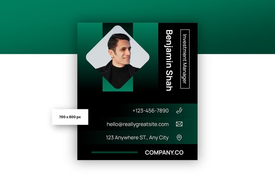 简洁专业的电子邮件签名设计,适用于商务或个人用途。一款设计提供三种不同尺寸,满足您的多种需求。现代、优雅、简洁的设计风格,令您的电子邮件签名更显专业。