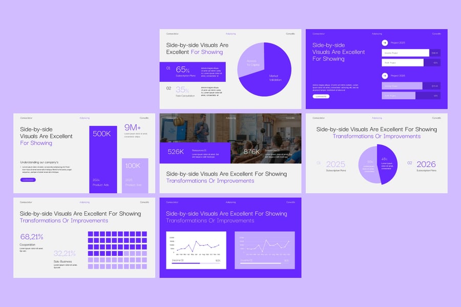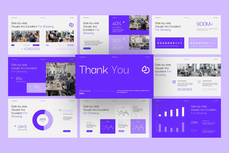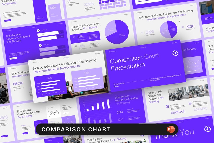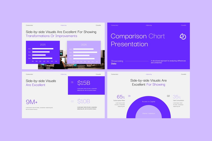 利用专业设计的对比图表,让数据驱动型演示文稿更具吸引力和影响力。