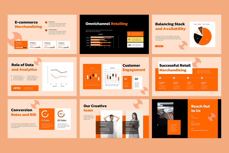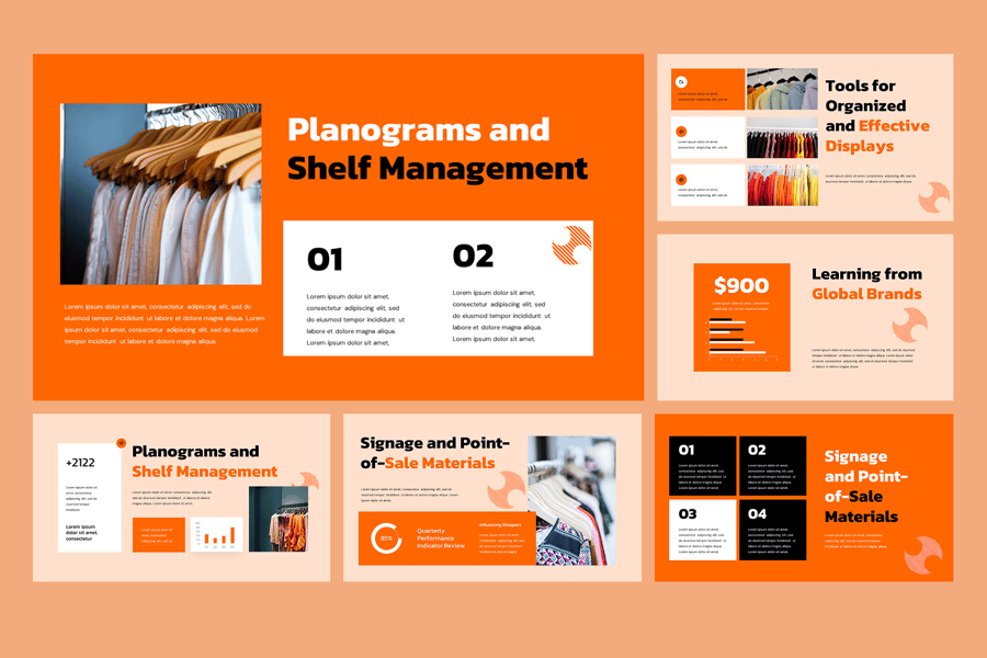零售商品陈列 Google 幻灯片模板非常适合销售策略会议、零售规划会议、产品发布会、客户提案和市场营销审查,可节省时间并确保演示文稿精美,从而在竞争激烈的零售环境中取得成果。