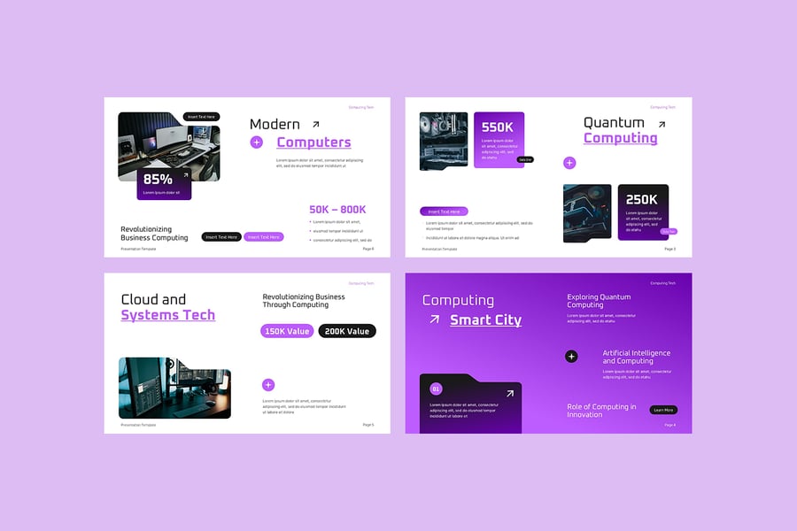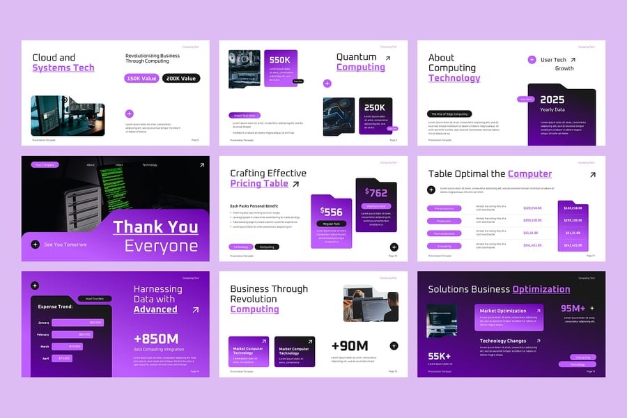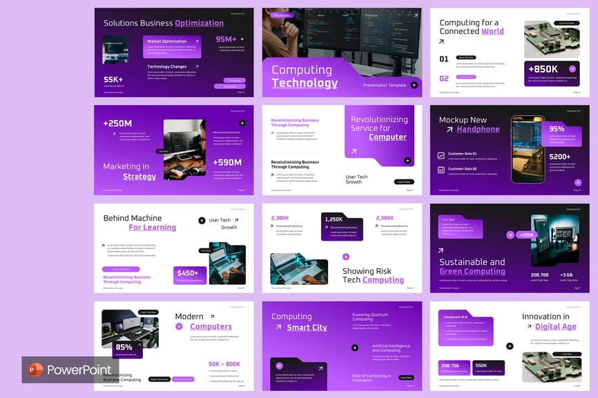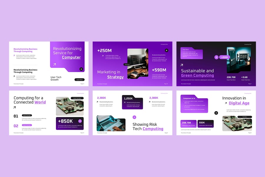 使用这款“计算机技术 PowerPoint 演示模板”,让您的技术演示生动起来。该模板设计简洁、现代且专业,专为 IT 公司、科技创业公司、数据工程师和数字创新者量身打造。此 PowerPoint 模板完全可编辑,布局清晰,包含未来感十足的信息图表和动态图表,助您清晰地传达复杂的计算机概念。