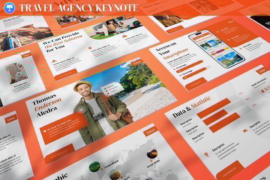 使用旅行社主题演讲模板,让您的旅行梦想成真。该模板采用色彩丰富的布局和引人注目的视觉效果,旨在以极具冲击力的方式展示目的地、旅行套餐和行程安排。重点突出基于应用程序的便捷预订和安全支付选项,让旅行计划轻松无忧。对于希望以创意、清晰和现代的方式展示服务的旅行社、旅游运营商和初创公司而言,这款模板堪称完美之选。